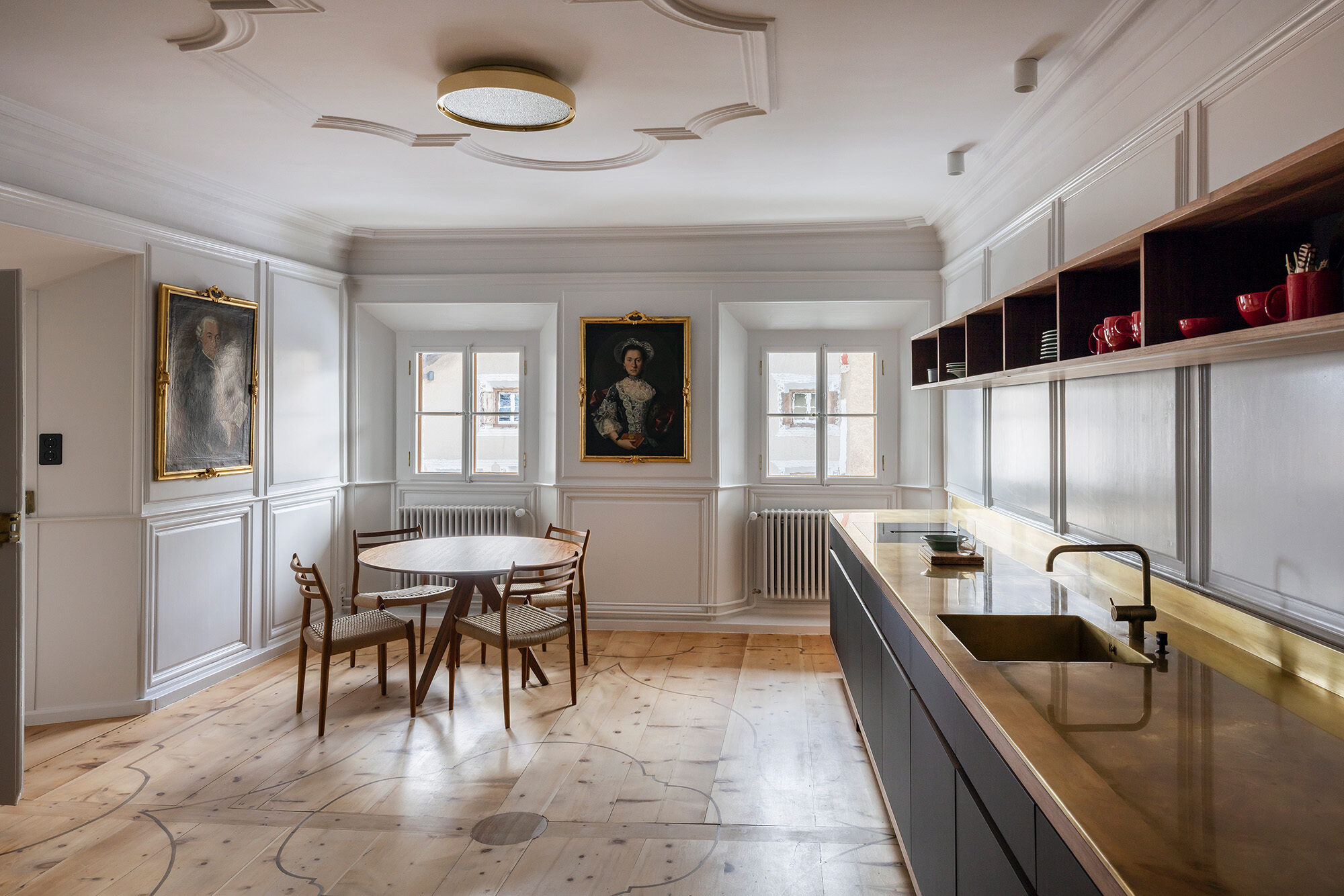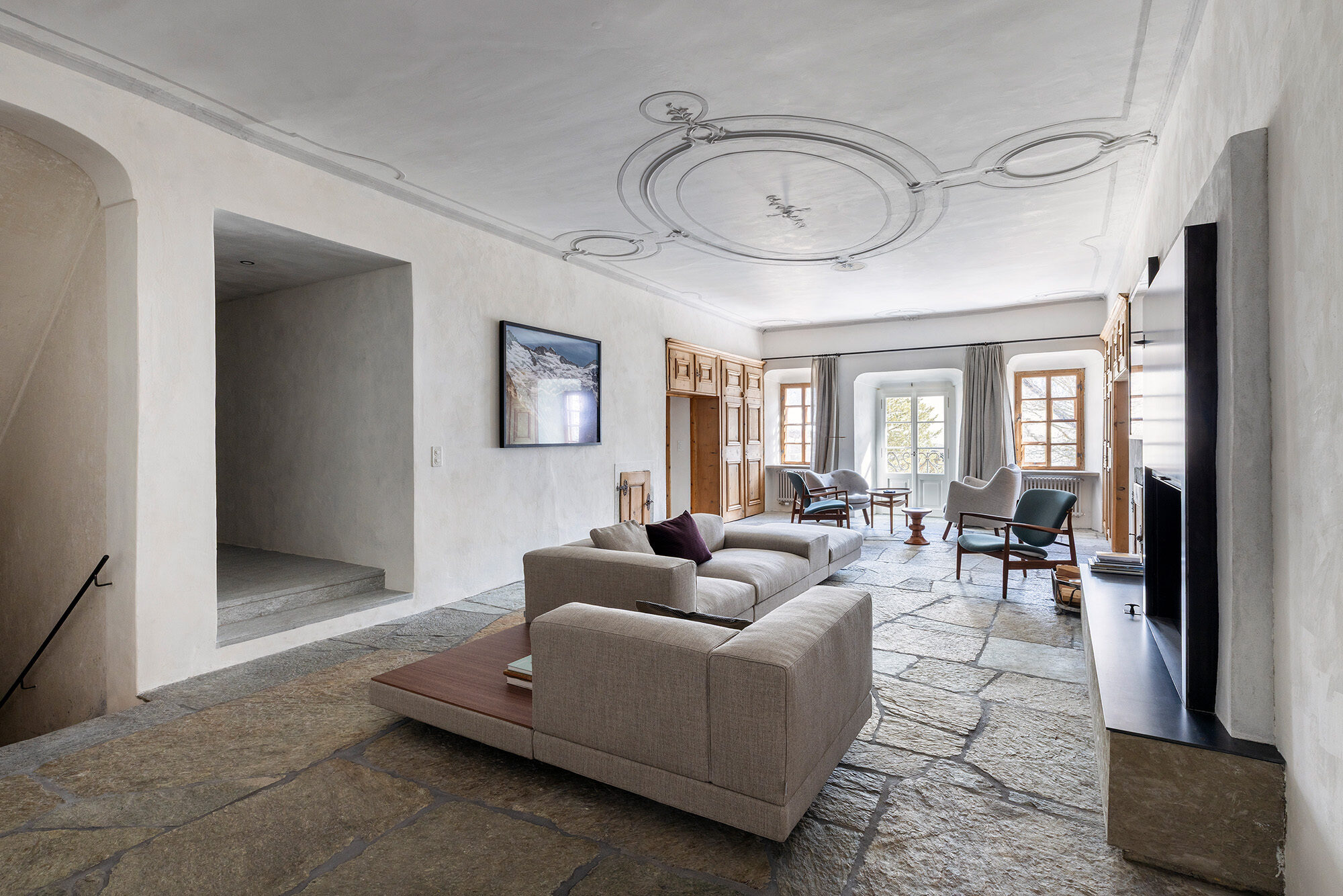 Dieser barocke Umbau sowie bauliche Ergänzungen des 20. Jh mit diversen kleinräumigen Wohnungseinteilungen war die Ausgangslage für das umfassende Sanierungs- und Umbauprojekt mit diversen Rückbauten neuzeitlicher Eingriffe und unvorteilhaften Materialien sowie der statischen Sicherung des Gebäudes.